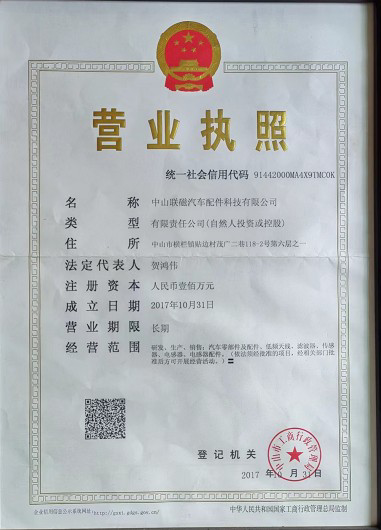 2017年,隨著公司規模及產品品類的增多,中山最新注冊為中山市聯磁汽配科技有限公司。