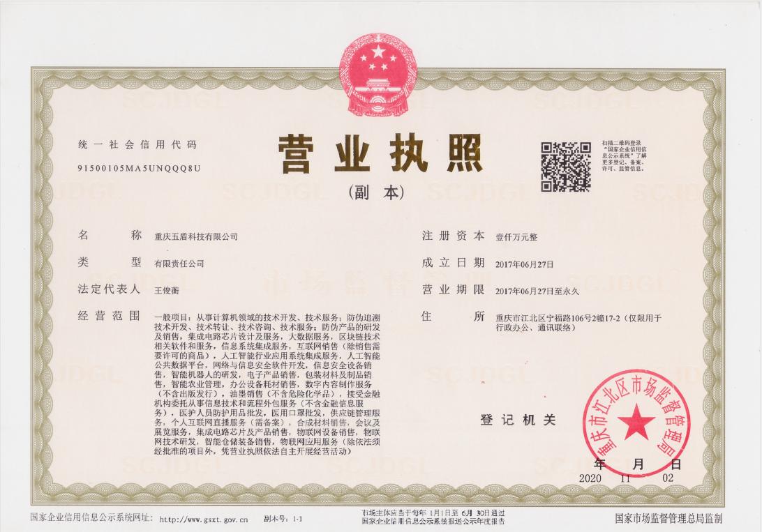 重慶五盾科技有限公司,位于中國西部大開發重要的戰略支點——重慶直轄市,成立于2017年,是專業從事產品防偽溯源領域研究與服務的科技公司;也是國內應用DNA動態芯片防偽的先驅者。