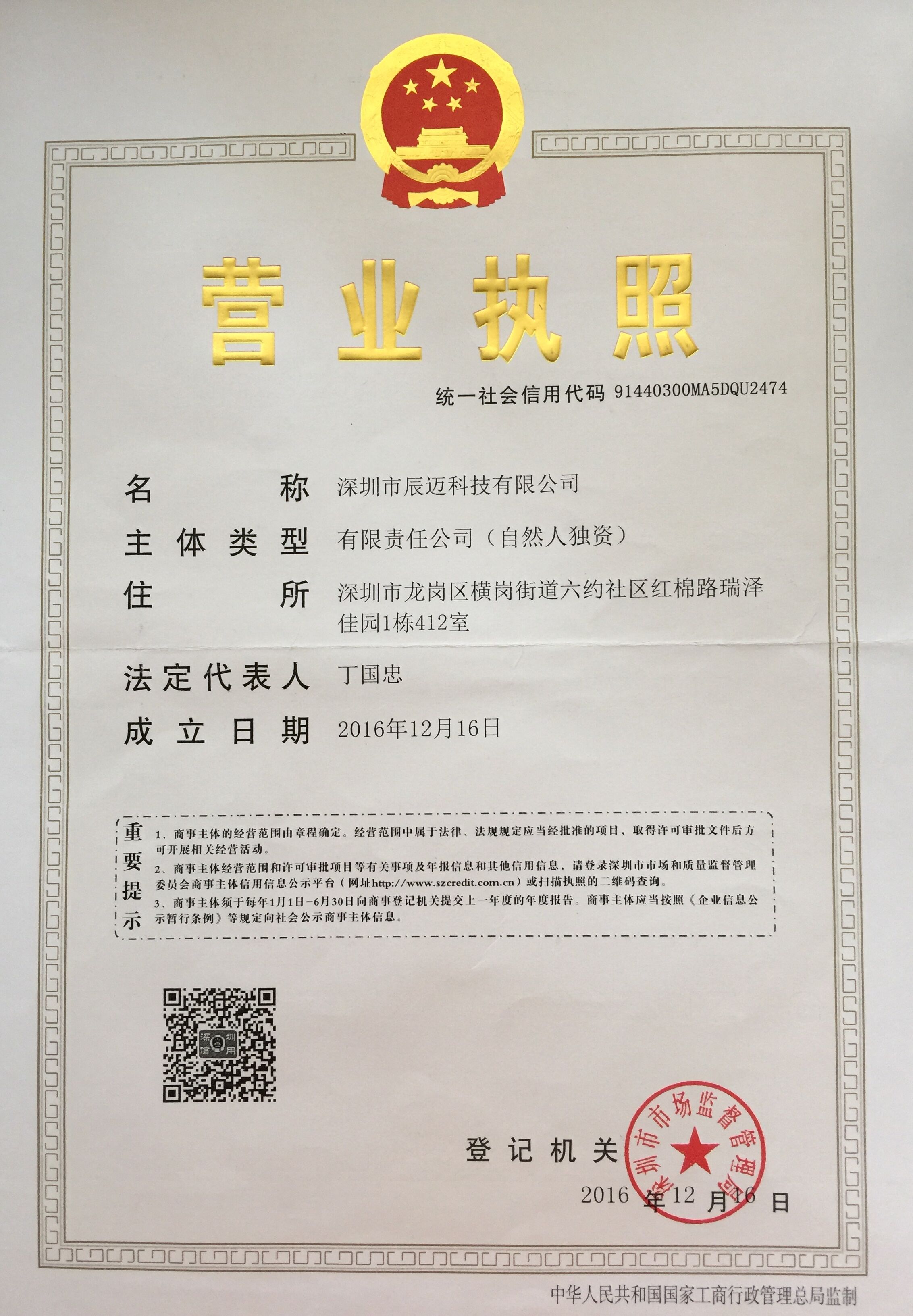 地址:深圳市龍崗區橫崗紅棉路瑞澤佳園1棟412