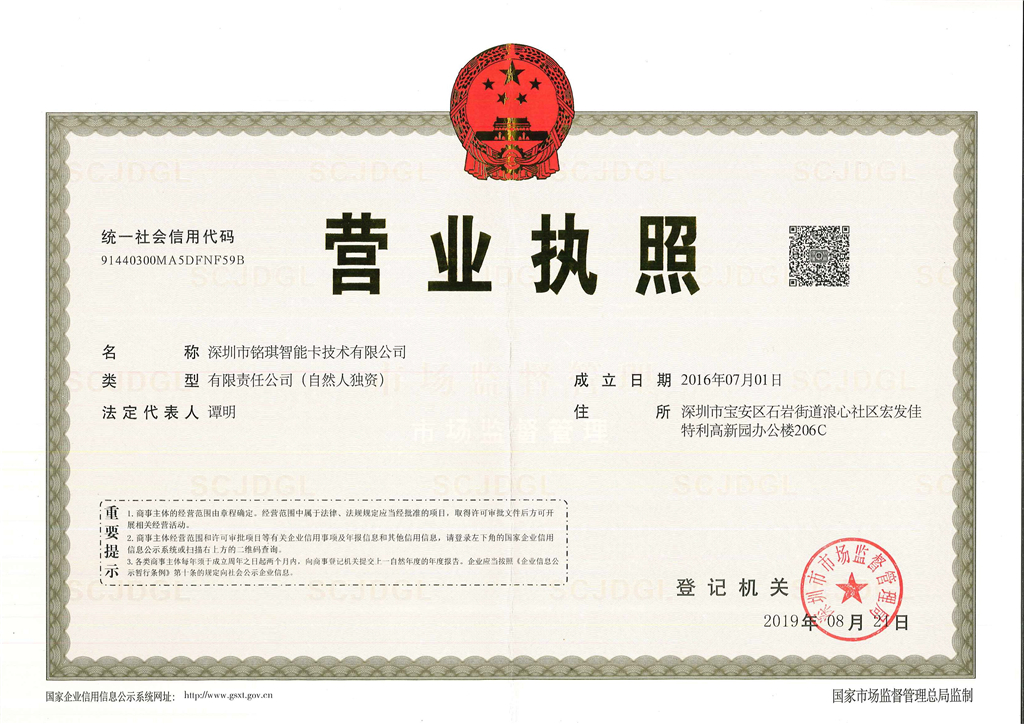 公司主營智能卡、電子標簽、NFC標簽,RFID腕帶、卡片制造加工、樹脂卡片生產與銷售。讀卡器產品的研發、測試、銷售以及配套產品銷售;物聯網技術應用;電子產品、計算機軟件技術開發、技術維護、技術咨詢及銷售;信息化系統集成的技術開發、系統開發、智能卡設備及配件、智能門鎖及配件、集成電路及配件、電子標簽及配件的銷售:國內貿易;貨物及技術進出口。(法律、行政法規禁止的項目除外;法律、行政法規限制的項目須取得許可后方可經營)