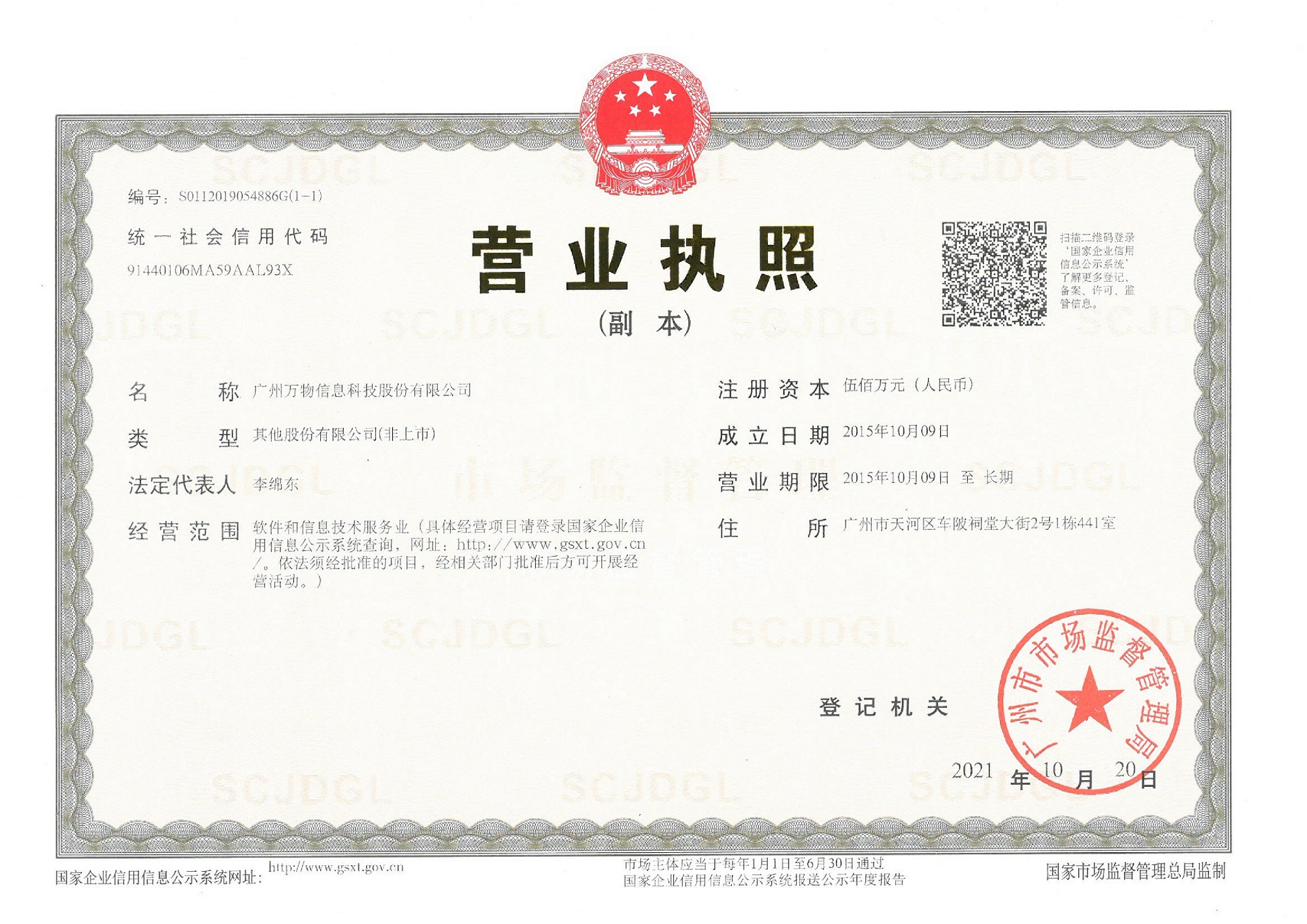 廣州萬物信息科技股份有限公司,成立于2015年,2017年被評為國家高新技術企業,并于2018年12月在新三板掛牌成功,證券代碼:873147,股票簡稱:萬物信息。
