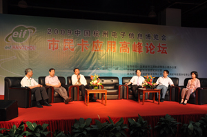 論壇借杭州市政府舉辦“國際電子信息博覽會”之契機,向國內外各參會城市展示和宣傳杭州市民卡工程及城市公共服務協同、共享、可持續發展的信息化應用成果。在2009電博會展覽廳,首次開辟了“市民卡專區”,整個展區有36個展位,神州數碼、杭州市民卡、浙大網新、深圳德卡、珠海金邦達、北京華大、中鈔、復旦微電子等來自全國的與市民卡發展有關的機構匯聚于此,共同展示了市民卡的相關技術和產品。