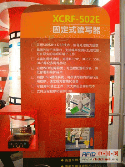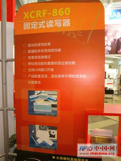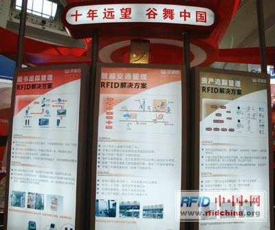 遠望谷全面展示電子標簽、讀寫器等系列產品,同時掛板上還以“十年遠望 谷舞中國”為主題,全面展示公司應用解決方案,含括資產、醫療廢物管理、集裝箱管理、海關自動核放、汽車稱重系統、物流周轉托盤、畜牧業自動識別追溯系統等眾多行業。