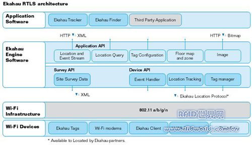 Ekahau定位引擎( EPE)是一個企業級的實時定位軟件,它是實時定位系統(RTLS )的核心。 EPE可利用任何標準任何品牌的企業現有802.11無線網絡,通過創新專利算法,精確計算無線信號強度RSSI值,實時精確提供Wi - Fi標簽和其他支持Wi - Fi兼容設備(如具有Wi – Fi功能的筆記本電腦、PDA、手機和條形碼掃描儀等)的位置、存在和狀態信息。它提供了以下功能要素: