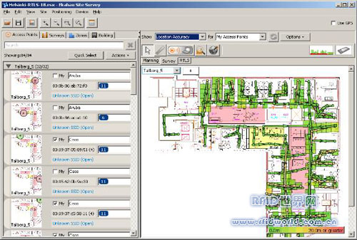 2、由技術工程師在現有無線網絡覆蓋的實地場地做Site Survey信號勘查測量,重新調整和配置AP,對無線網絡進行優化,并根據客戶實際情況和需求,設計生成資產設備及員工行走路線圖;