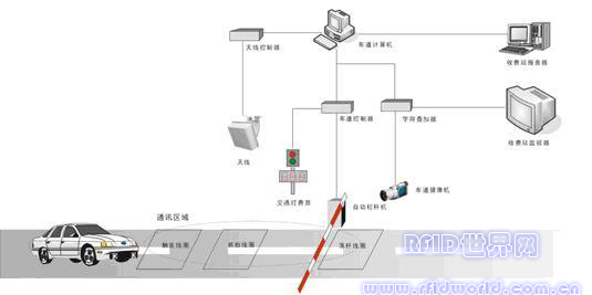 在各個設備中,電子標簽讀寫天線通過RS232串行電纜線直接連接到工業控制計算機上,由應用程序直接控制;其它設備如自動欄桿、費額顯示器、車輛檢測器等都通過車道控制器與工業控制計算機連接,由應用程序控制。字符疊加器則將過車信息疊加在視頻信號上后傳至收費站監視器。