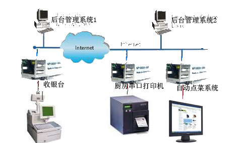 通過conextop公司提供的串口轉以太網串口服務器模塊,加上一些轉換電路,就可以實現外掛式的串口服務器,可串口連接收銀臺和廚房菜單串口打印機,再通過網絡與PC服務器連接,或者可以將串口服務器串口轉以太網模塊嵌入到設備里面,直接以網絡通信的形式跟ADSL連接。當客人在點菜后廚房可以在第一時間做菜,減少顧客的等待時間。而且可以通過查詢一天的記錄了解各種菜式的銷售量,統計每天的用餐高峰期,合理安排快餐店的工作。