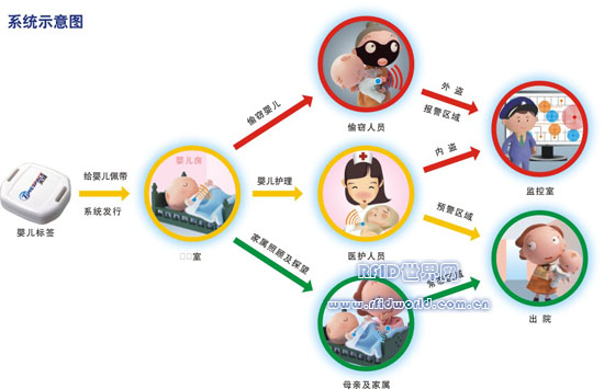 母嬰識別及新生兒防盜管理系統是將RFID技術同醫療行業結合的產物,將對大型綜合醫院的婦產科或婦兒醫院的母嬰識別管理、新生兒防盜管理、通道權限管理等起到重大的作用。
