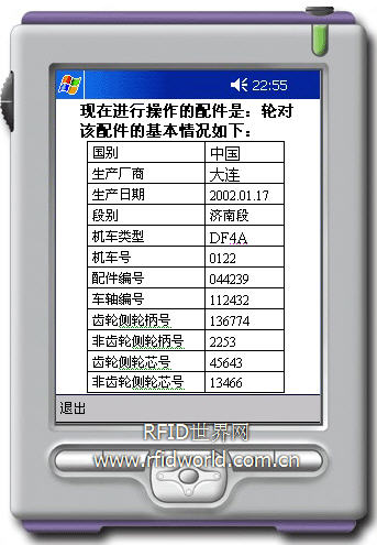 當輪對檢修完畢,需要上車時,工程師使用手持設備,將新數據編輯、并更新電子標簽的相關數據。