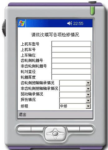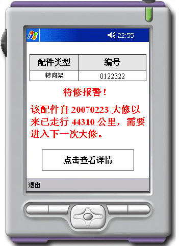 由于某些配件下車后在機務段停留、維修時間較長,基于統一的數據庫和系統中各個手持終端數據的更新,當不同的工程師使用不同的手持終端對輪對進行讀取,程序界面上應顯示該輪對當前最新情況。如有待修情況則以醒目方式體現(盡可能將所有故障一次性列出)。界面如圖: