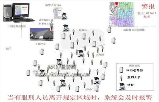 隨著監獄管理制度的逐步完善和獄政設施的不斷更新,監獄防范和控制各種安全事故的能力大大增強。但隨著犯罪類型和押犯成分的日趨復雜,罪犯的報復性、狡詐性增強,浮躁心理和不安分意識增強,稍有不慎他們就會鋌而走險,伺機劫持人質、脫逃、自殺、哄監鬧獄,給警察的人生安全和場所的持續穩定帶來極其不利的影響。利用RFID技術對監獄可實現智能監控管理,犯罪人信息資料管理、越界報警等功能,可大幅度的提升監獄內部的安全性和管理效率,降低監獄管理人員的工作強度,該系統還具有多方面的擴展功能,比如與視頻監控結合并集成,使RFID技術與流行的視頻監控技術有機的結合在一起。