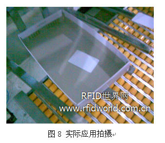 在一期的實施方案中,傳送機構的尾端(即倉庫入口)放置一臺RFID讀寫設備,在成型線的配對工位,操作員在每雙成品盒內放置一個存儲有批次及計量信息的計量卡,在成品被傳送到傳送機構末端后,RFID設備識讀到批次卡實現計數統計,同時將數據傳送給ERP系統進行報表等處理。