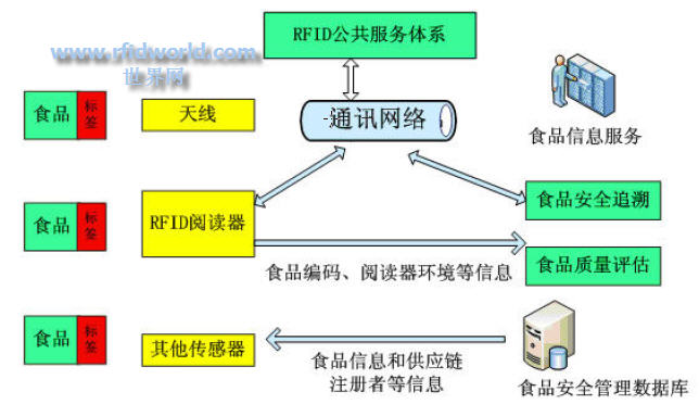 在目前的食品工業中,食品從生產到最終消費,需要經過一些列的加工,運輸和儲存環節,如果任何一個環節出現漏洞,就可能使食品處于不安全的狀態,如接觸到傳染源或儲存不當導致食品變質。RFID技術為解決這一問題提供了有效的技術途徑,利用它可以實現食品安全管理、追溯和評估。
