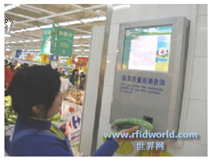 超市作為消費者購買食品的主渠道,消費者可以在超市或廠家提供的RFID電子標簽查詢終端上,查看所購買食品的信息。