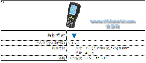 VH-70可以實現移動閱讀,產品性能穩定工業級設計,可以滿足室內外全天候工作,可應用于對產品的抽檢、信息采集等環節。該產品自帶WinDowsCE操作系統,并集成藍牙、WIFI、GPS、一維條碼等多種模塊。