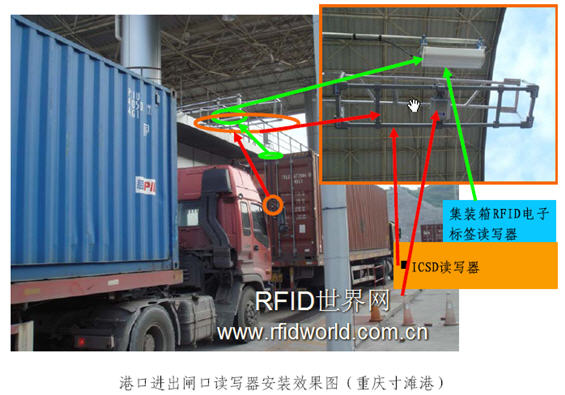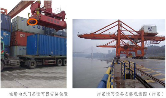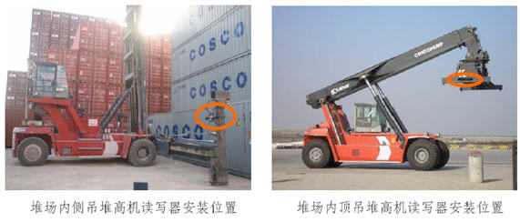 通過在港口堆場的進出閘口、堆場內側吊堆高機、堆場內頂吊堆高機、堆場內龍門吊、岸吊、橋吊上布置讀寫設備,整個集裝箱物流鏈所涉及到的所有數據采集點的可能采集設備都已覆蓋,完整解決集裝箱物流鏈的讀寫設備安裝和數據采集問題。