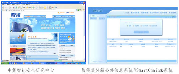 在國家科技部科技支撐計劃項目、信息產業部電子發展基金項目、和廣東省粵港關鍵領域重點突破項目支持下,中集集團完成實現集裝箱自動跟蹤與監測的智能集裝箱安全設備(Intelligent Container Security Device,ICSD),ICSD 讀寫設備,和智能集裝箱公共信息系統VSmartChain®的開發,完成智能干貨集裝箱SmartGuard®系統和智能罐式集裝箱TankSlueth®系統開發。中集集團與合作伙伴一道,完成集裝箱RFID 電子標簽開發,和適合集裝箱惡劣工作環境使用的RFID 電子標簽讀寫設備開發等。