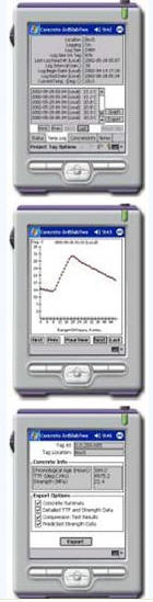 5、通用軟件:非常輕松的將從混凝土監控軟件得到的數據傳到Microsoft Office 應用軟件中在筆記本或手持PC上運行的軟件,或對于典型的項目運用標準ASTM C1074模式,或針對急需工作的采用快速模式。 圖解式評估及對比,每個單獨的標簽都存有注釋信息。(比如:混凝土已經灌注了一小時)