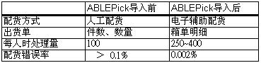 摘要:ABLEPick 是一套電子標簽輔助揀貨系統(Digital Picking System),電子標簽輔助揀貨系統于國、內外物流中心在揀貨作業上的使用相當普遍,特別是對于多樣少量的揀貨型態。