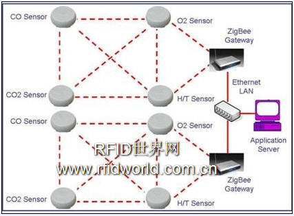 依照室內空氣質量法規規范要求,監測系統必須連續進行各項氣體含量監測,在結合ZigBee Sensor Node(如H/T、CO、CO2、O3等)、與ZigBee Gateway及各種不同偵測功能的Sensor,并可在特定區域搭配使用Wi-Fi或是其它網絡傳輸機制,對監測區域內進行有毒氣體、溫度變化等全面的實時偵測和監控。