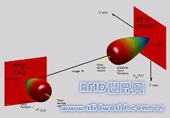 而當讀取器接收到從標籤反射出足夠強的回波(即Signal Power大于某門檻值)時,則代表此標籤可以被讀取;但若要建構較為真實的模型,則還要根據標籤天線面的方向與讀取器天線面的方向來建構。即根據天線面製作出與角度有關之天線增益場型(Antenna Gain Pattern)。在此為說明方便,不考慮天線面積,新的模型可依舊的模型加上空間幾何的關係。