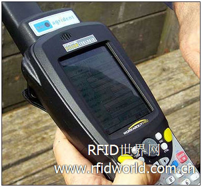 農場主和政府的檢視員采用得邏輯 Workabout Pro PDAs和 Agrident AIR 200 RFID閱讀器追蹤牛的位置轉換