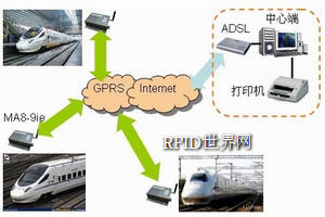 解決方案采用Helicomm的MA8系列GPRS無線數傳終端(簡稱DTU)與列車車頭安裝的傳感器如溫度傳感器、速度傳感器、電量傳感器等通過RS232/485接口連接,采集的數據通過GPRS無線數傳終端和Internet上傳到遠端中心端,遠端中心端通過采集的數據進而實時了解到列車的當前狀態,并可以發送數據對列車車頭內的控制器進行一些設備的控制,如車廂內的空調、燈光等。