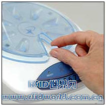 工作流程如下:當醫護人員從病人身上移去靜脈止疼點滴后,每個病人都分配一個 RFID腕帶。腕帶里含符合 ISO 15693標準的無源 13.56 MHz RFID嵌體。腕帶芯片記錄著該病人醫療記錄的定位碼(醫院用于追蹤病人醫療記錄和藥品處方)。負責這位病人的護士接收到醫院藥房里送來止痛藥品后(以密封托盤的形式),將托盤放入MOD里,MOD集成一個RFID閱讀器。接著,護士采用 MOD和手持或移動計算機之間的藍牙通訊連接對 MOD進行編程。手持或移動計算機運行的軟件由 Avancen開發。