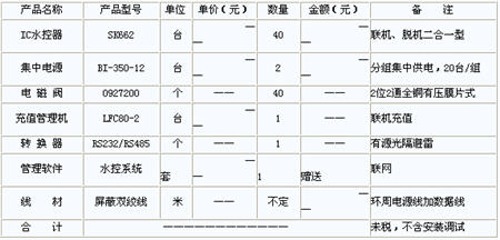 非接觸式IC卡水控系統配置單:
