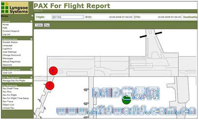 采用 RFID系統后,當一個航班準備登機時,系統根據乘客距離登機口的距離采用紅,黃,綠色在一張電腦圖上來代表乘客。那些靠近正確登機口的乘客顯示為綠點;黃點代表他們離登機口有點距離,但還是可以準時到達,接著系統呼叫或發送文本信息給黃點乘客告知他們即將出發的航班;紅點則代表無法準時到達登機口的乘客,如果必要的話,工作人員把顧客的行李從原航班里退出,并開始重新為他們預訂航班。