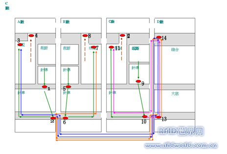 3、RFID數據采集點的分布圖:(紅色為采集點)