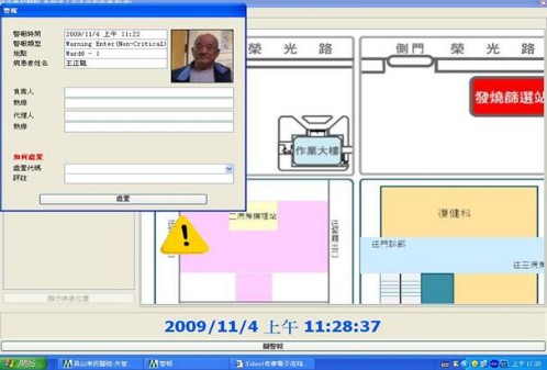 圖二:與病房號碼等資訊傳回護理站的老人失智管理系統上,提醒護理人員注意。 (宜蘭榮民醫院提供)