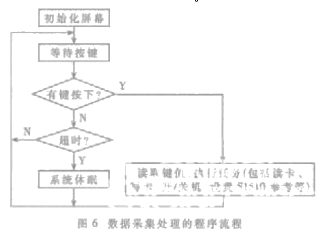 當指定時間內沒有鍵按下, 系統則進入休眠狀態, 從而達到省電的目的。程序流程圖如圖6。
