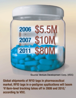 電子產業一直寄望于采用射頻識別(RFID)技術來抵制藥品的偽造。但勢力強大的制藥業游說團體不斷煽動相關的法律爭論以及美國聯邦政府的一再拖延,在在使得人們開始擔心該技術可能不見得能應用于追蹤供應鏈中的藥品流向。