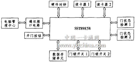 本文討論的控制器采用8位單片機設計,集數據處理、存貯、通訊功能于一塊印制電路板上,具有與讀卡器終端和通訊口快速拆除的特點。因而,它既可作為一個節點同主機通訊形成主從式總線結構網絡,也可以作為一個獨立的單片機控制系統,具有一定的靈活性。