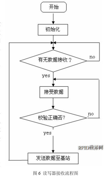 讀寫器的主要功能就是提供一個能量場,和標簽進行通信。接收身份標簽發送過來的數據。MCU 初始化后讀寫芯片就開始進行載波監聽,如果有標簽發送數據,在完成載波檢測和地址匹配的判斷后就開始接收數據,芯片具有自動校驗功能,如果校驗錯誤就重新接收。在完成對數據的正確接收之后,讀寫器將數據發送至基站,再由基站向上位機傳送。