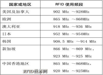 表1 全球RFID頻率規劃情況