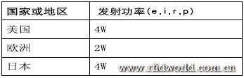 表4 其他國家或地區的RFID發射功率規定
