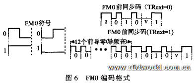 標簽反向散射給讀寫器的數據采用FM0編碼,圖6給出了FM0編碼的格式。