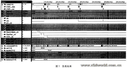 本文依據EPC C1G2及ISO/IEC18000—6協議,利用VHDL硬件描述語言和EDA工具設計實現了UHF RFID標簽數字電路,可應用于工作在超高頻段的各種RFID標簽的數字部分。文中給出的仿真結果表明完成的設計符合協議要求。邏輯綜合也得到讓人滿意的結果,這些都保證了電路的高性能和后端設計的順利完成。后期的工作是對流片結果進行測試,另外,在滿足協議功能要求的基礎上,如何盡可能地簡化電路結構并盡可能降低功耗是進一步研究的課題。