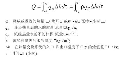 根據流量傳感器給出的流量和配對溫度傳感器給出的供回水溫度,以及水流經的時間,通過計算器計算出系統所釋放或吸收的熱量。其基本公式: