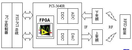 第二代RFID旨在從許多方面改進性能,包括更經濟、更小的芯片,更高的數據傳輸速率,更長的電子產品編碼,更先進的防沖突算法,更快的讀取速度等。在第二代RFID大幅度提高性能的同時,也為測試系統提出了更大的挑戰,其中最為核心的技術難點是,該標準要求微秒級的實時應答,目前尚無測試儀器能達到如此高的實時性。因此我們采用NI最新推出的一塊模塊化儀器,并以FPGA為處理核心構建了新一代的測試系統。