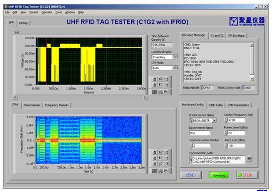在NI的數字濾波器設計工具包,調制工具包的基礎上,結合聚星自行開發的無線測試工具包,我們實現了對RFID中的各種復雜調制、編碼標準的良好支持。