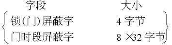 門屏蔽字節:每1bit 代表1 個門的屏蔽位,1 代表此門有效,表示本群組能使用此門. 0 表示無效,本群組不能使用此門. 共4 字節. 時段屏蔽字節:同上,每1bit 代表1 個時段有效或無效,每個門最大有64 個時段,占用8 字節. 最多32個門,占用256 字節.