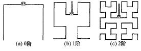 0至4 階的Hilbert分形結構如圖1 所示. Hil2bert天線是1 /3等邊分形天線, 0階Hilbert天線各邊長均為h. n階Hilbert天線總長度為