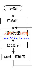 射頻識別接收系統的主要任務是:當電子標簽進入閱讀器有效距離范圍內時,從標簽中解讀出信息。所讀取的信息在LCD上顯示,也可通過USB接口傳送到PC主機作進一步的處理。程序的主要流程如圖4所示。