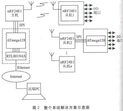 在嵌入式TCP/IP平臺下利用工作頻率為2.4 GHz的無線收發模塊nRF24E1,進行短距離的點對多點的無線通信;用無線技術解決最后10 m的通信問題,可實現一種 無線接入的解決方案。