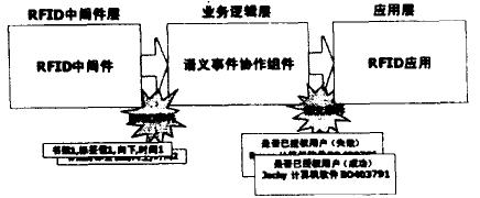 圖3顯示了RFID在基于語義協作的RFID 系統中的角色,以及在此系統中可能出現的事件類型。語義協作組件從RFID中間件獲得RFID事件,然后將它們轉換為一種更可用的形式,從而使得對RFID的應用更加高效。