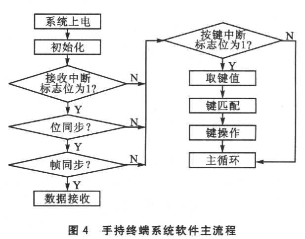 人機接口包括鍵盤矩陣和LCD液晶顯示屏。鍵盤采用5×4矩陣,鍵盤的復用體現在軟件算法中;使用Solomon公司的SSDl812圖形點陣(132×54)液晶顯示模塊作為人機對話的界面,SSDl812工作電壓為l.8~3.5V,低功耗,特別適用于手持終端設備。具體設計這里不再贅述。