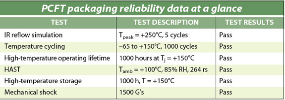 PCTF工藝還可增強器件的可靠性,由于采用了銅鍍層的覆蓋物,大型的無引腳SMT器件,通過可靠的焊接可以直接裝在PCB板上。典型的封裝尺寸為0.16平方英寸到1.00平方英寸。器件通常采用4.5×4.5英寸的多組包裝。其元件組裝、芯片粘合、鍵合甚至測試、包裝等流程可以實現全自動化。
